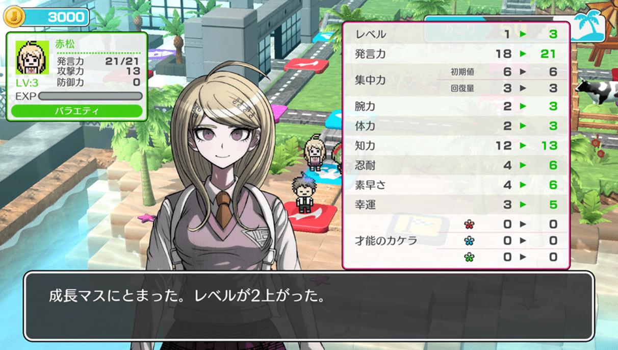 サイコロを振って出た目の分だけ進み、止まったマスによってさまざまなイベントが発生。50日間の合宿を通して、キャラクターとの交流と育成が楽しめる。