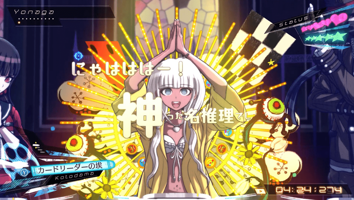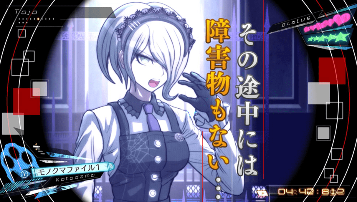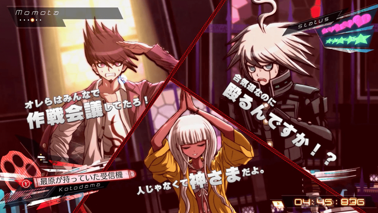 捜査パートで集めた証言や証拠から事件の全体像を推理し、ハイスピードに展開する学級裁判の中、アクションテクニックを駆使して相手の発言の矛盾を打ち抜く。推理アクションの要となる学級裁判は、豪華声優陣によるフルボイス演出で進行する。